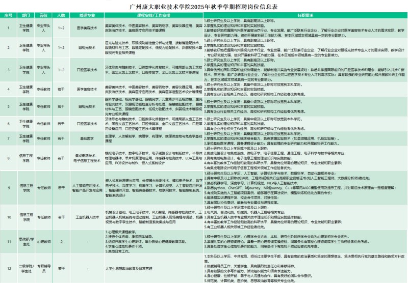 广州康大职业技术学院2025年第二批人才招聘公告