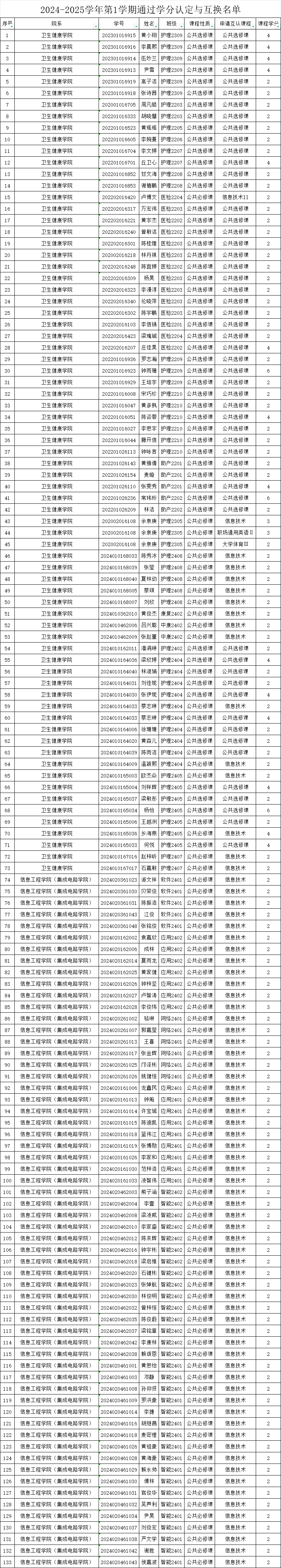 经审核,以下是 2024-2025 学年第1学期通过学分认定与互换的名单,现公示如下: